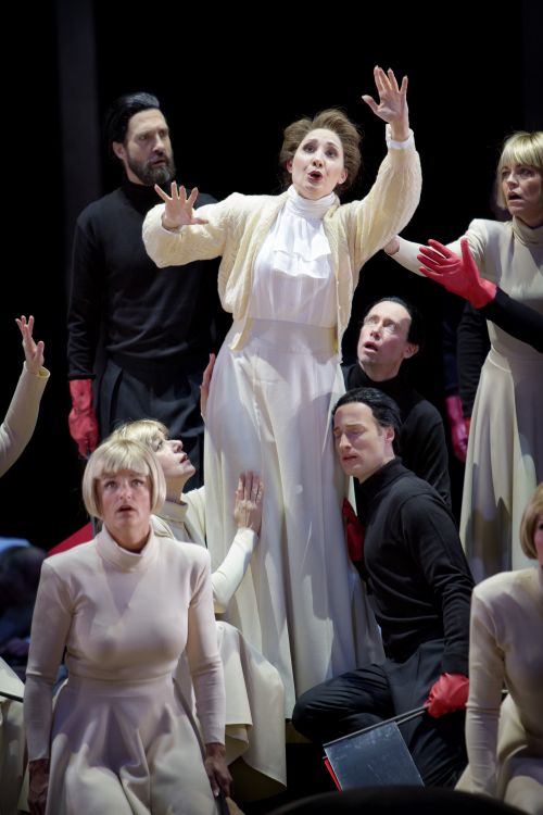 Mitt i denna undergång kommer så den blinda poetissan. Kostymtecknare Bea Szenfeld klär Alexandra Büchel i lång, vit Edith Södergran-klänning för att markera förebilden. Büchel ser ljuset i en skriande, ordlös aria och hon längtar till ”landet som icke är” – till det nya livet i döden. Daniel Hällströms Mimatekniker sörjer resignerat: ”Jag efter jag brast sönder och försvann”. Och vår resa genom evigheten fortsätter.