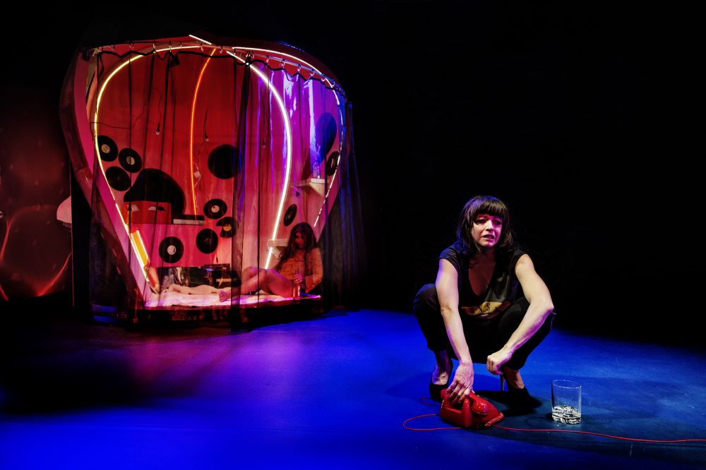 Vi bjuds in i teatersalongen där Petra förstås intar scenen för att utagera det som eventuellt är hennes privata liv men som i grunden alltid får en överton av drama och spektakel för att bli kittlande provokativ konst och performance.